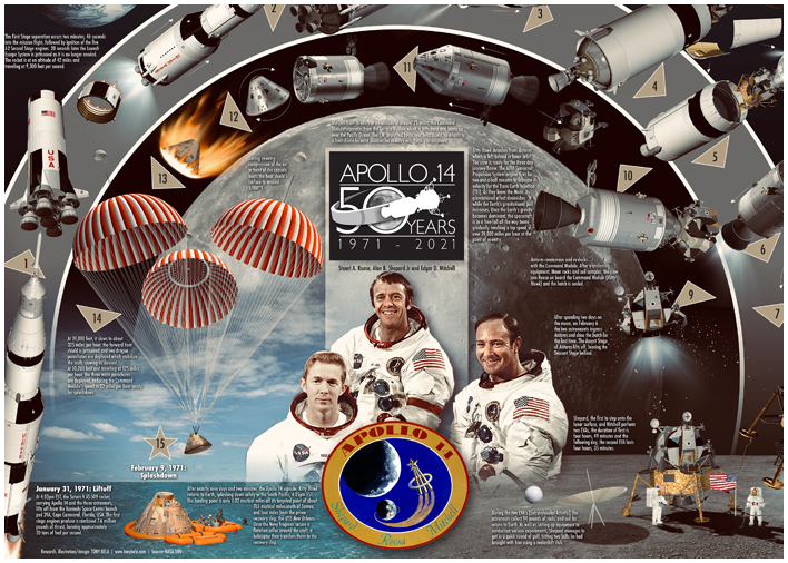 APOLLO 14 50th anniversary poster (Version A with text / version B without text)