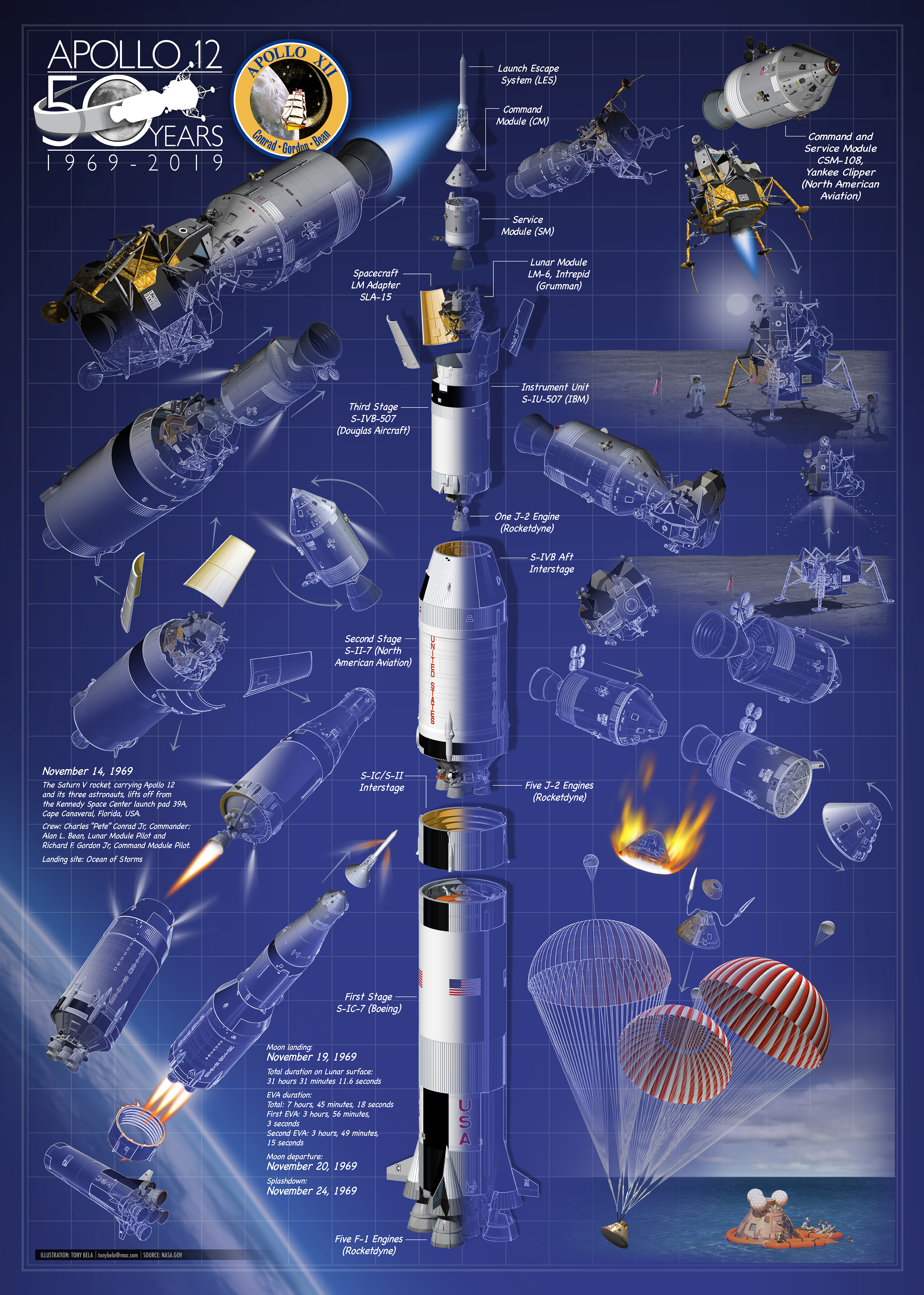 APOLLO 12 and 13 INFOGRAPHICS (Free to use for non-profit and educational purposes.