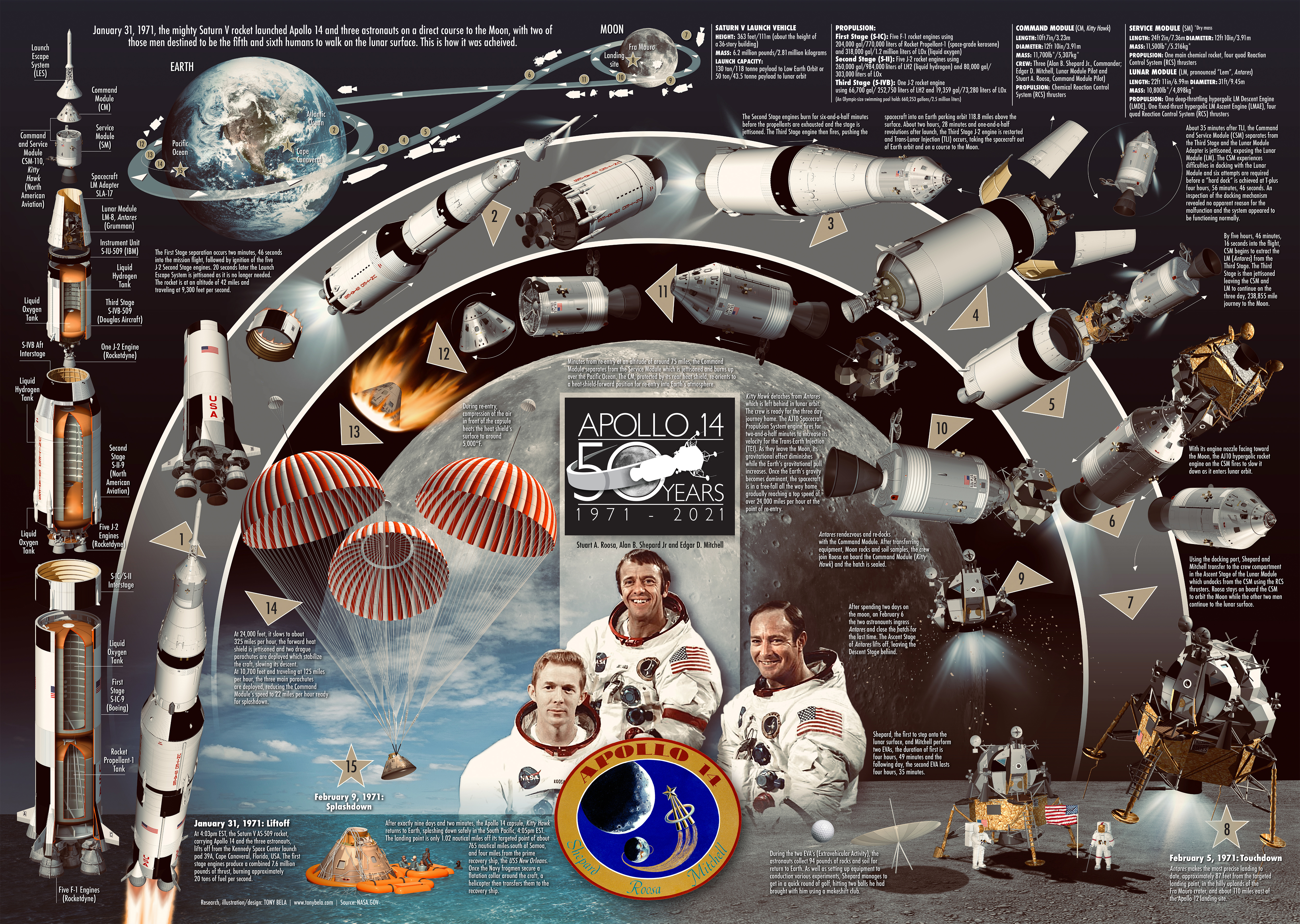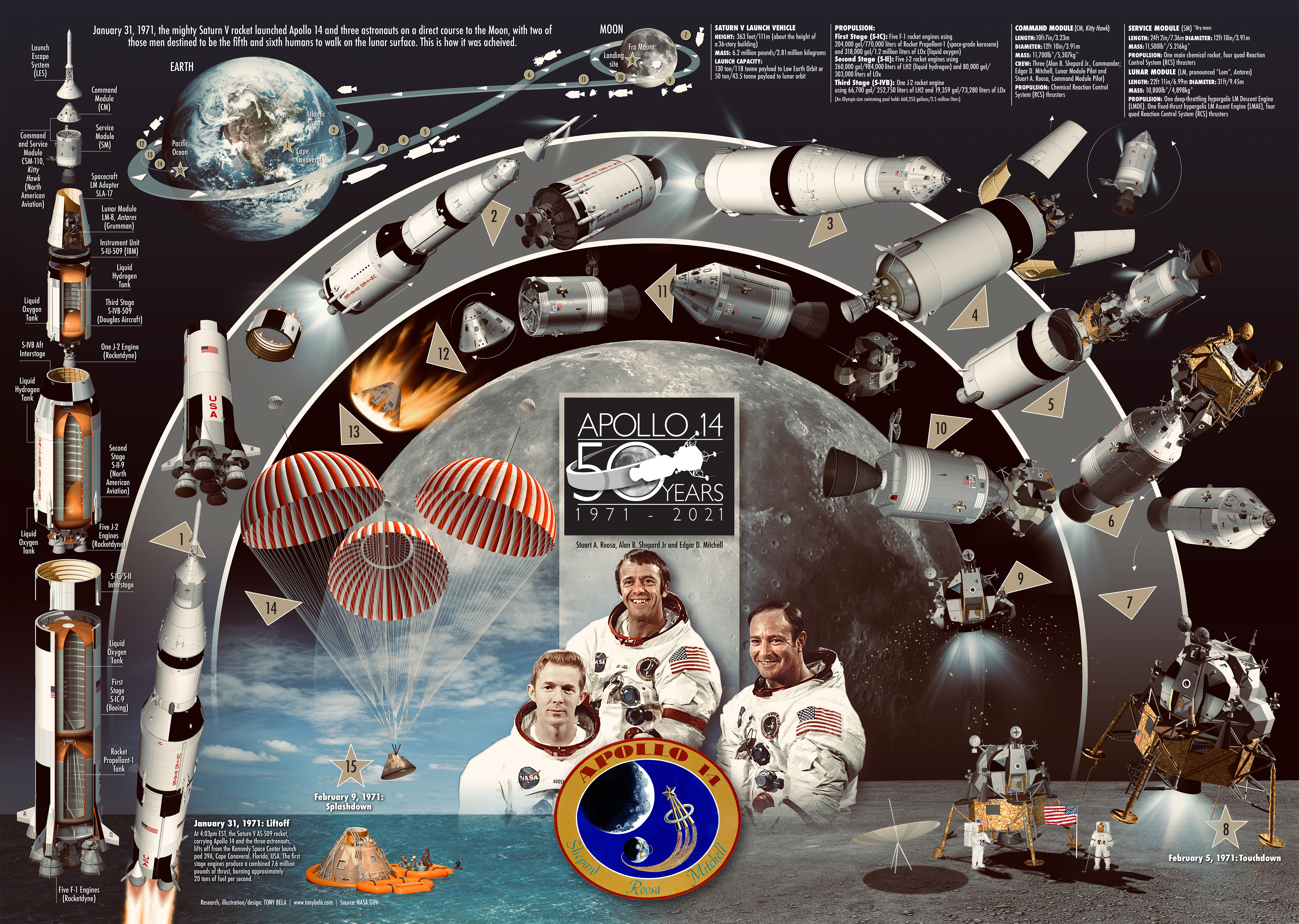 APOLLO 14 50th anniversary poster (Version A with text / version B without text)