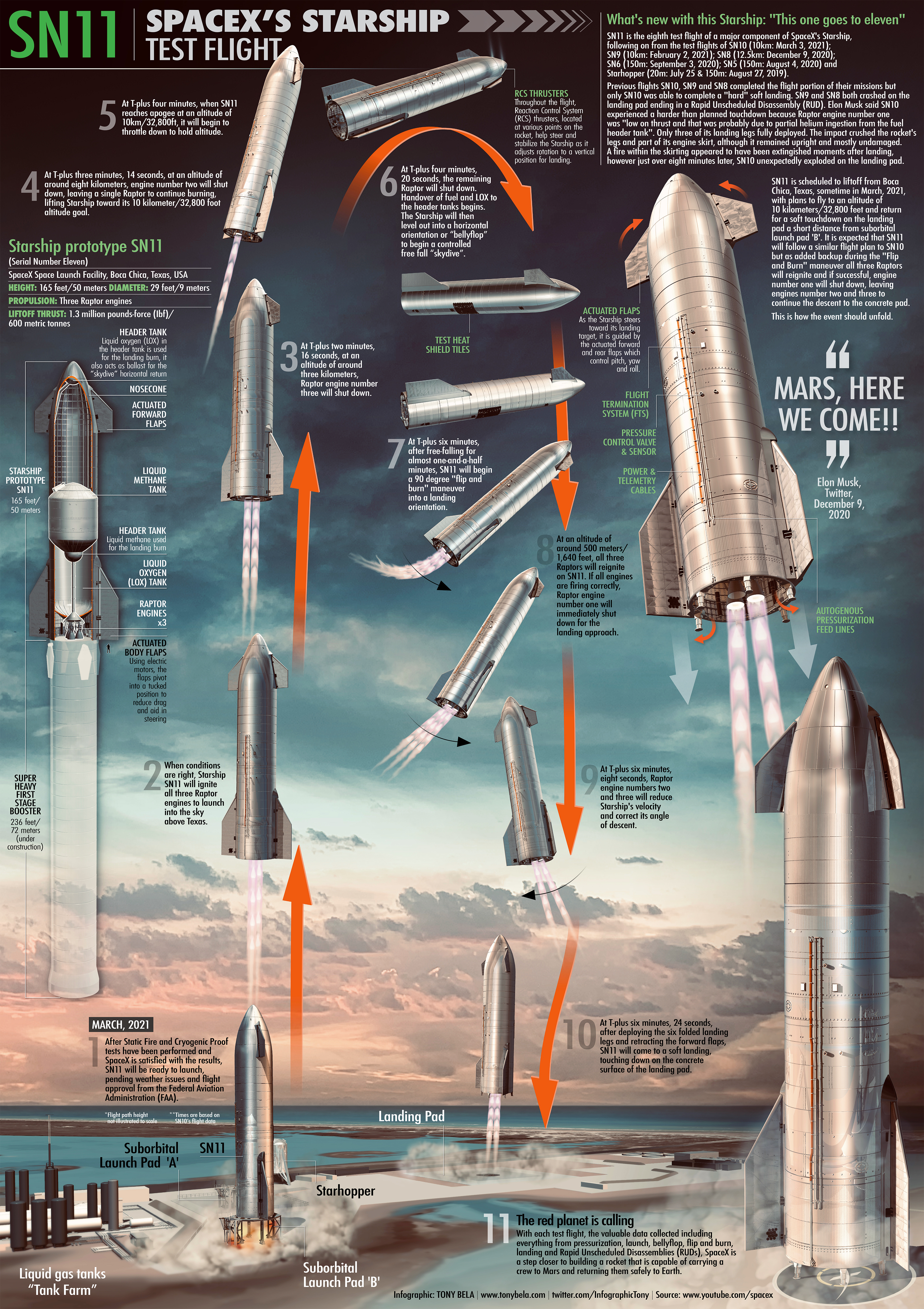SPACEX STARSHIP SN11 infographics: Pre-launch & Post-launch